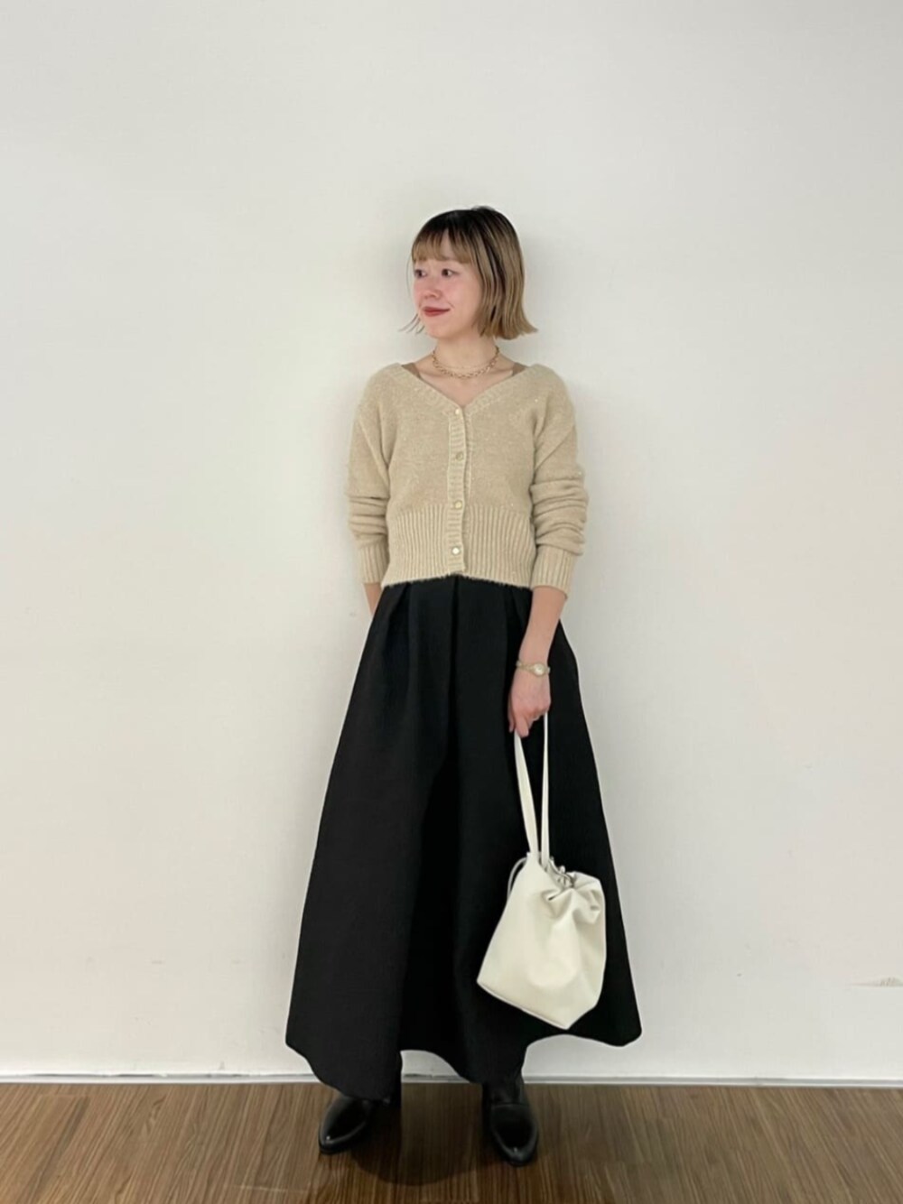 本日は【スパンコール2wayニット】スタイルのご紹介です😉 前後2wayで着れるニット✨ 金ボタンを前にしてもかわいいし♡ 背中をV空きで着てもかわいい♡ ゴールドのようなベージュのカラーがゴールド好きとしていい色です🤭 スッキリ着丈なのでボリュームのあるスカート合わせがとっても合います◎ ボトムのスカートはジャガードの高級感がある素材✨ ボリューム感がとってもかわいく華やかなスタイルに! 柔らかい素材なので履き心地もとってもいいです。 ぜひ、参考にしてみてください☺️