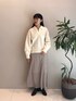 ボンディング素材で程よい厚みとハリが心地よいポロトップス。ゆとりはあるものの、着丈のバランスですっきりとした印象に。 秋から春と長く使えるのも嬉しい♪ スカートはウエスト周りにフィット感があり、足先にかけて動きのあるシルエット。総柄ですが、白は上品にまとまります。お仕事と兼用でお召しいただけそうです♡