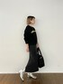 ⚪︎pullover/裏起毛の暖かく着れるスウェットです。箔プリントのロゴがポイントに! スッキリした着丈の長さなのでスカートとの相性抜群。 ゆるっとしたシルエットですが、だぼだぼすぎないので大人カジュアルスタイルにオススメです。 ⚪︎skirt/ニット素材のタイトシルエットなので女性らしいラインのでるスカート。 スパンコールのラメが入っているので、ニットでもカジュアルすぎず上品なコーデになります♡ 同素材のニットがあるのでセットアップで着るのももちろんオススメですが、スウェットとカジュアルなコーデで合わせてもかわいいです。