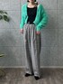 【サイズ感】 トップス:標準 ボトムス:標準 【着用レビュー】 短丈カーディガンは開けて着るのもかわいいです。 発色の良いマイルドなグリーンが肌をきれいに見せてくれます。 パンツは裏地がついて冬も暖かく着られます。 ウエストゴムが楽すぎて2色買い続出です。 ピタッと穿きたい方は、1サイズ下げて買う方もいらっしゃいます。