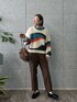 【サイズ感】 トップス:標準 ボトムス:標準 【着用レビュー】 大胆なカラーブロッキングのニットなら、シンプルなワンツーコーデでも抜かり無し! 毛足が長めでトレンド感もありかわいいです。 チクチク感はあまり気になりませんでした。