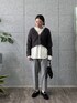 【サイズ感】 トップス:標準 インナー:ややゆったり ボトムス:標準 【着用レビュー】 クロップド丈のもけもけカーディガン♪ テープヤーンの立体感がかわいいです。 一番上のボタンを開けて後ろに抜いて着ることで、動きのあるコーデに。