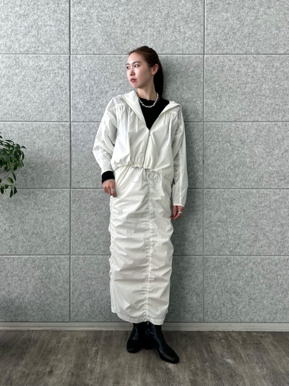GALLEST OFFICIAL(GALLEST)のスカート「シャーリングナイロンスカート」を使ったコーディネート