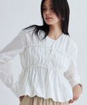 GALLEST OFFICIAL(GALLEST)のシャツ/ブラウス「シャーリングギャザーブラウス【フロントボタン/前開き】」を使ったコーディネート
