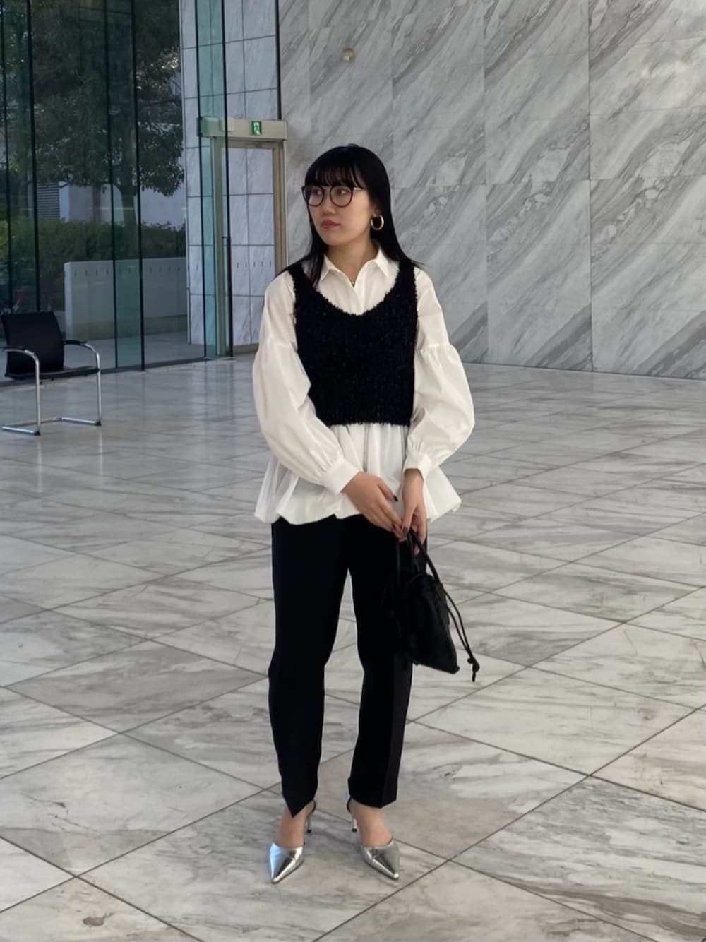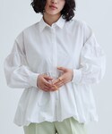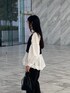 かっこいいモノトーンコーデも、バルーンやパンプスを用いて女性らしさをプラス。 去年も似た形で出てたペプラムブラウスが、今年は裾がバルーンになりました✊✨ 取り入れやすいトレンドアイテム。店頭でも早速春カラーが人気です! 一枚でもかわいいですが、今回はビスチェを重ねてみました。表情感のあるフェザーを入れることで、コーディネートが垢抜け♡ パンツはテーパード型を選ぶと全体的にすっきりとまとまります♪