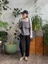 【サイズ感】 トップス:標準 キャミソール:ややゆったり ボトムス:標準 【着用レビュー】 昨年から好評のシアーニット。 シアーの軽やかさとスパンコールの煌めきで、グレー×ブラックコーデも重たく見えないようにしました! やや太めのテーパードパンツは、脚のラインが気になる方にもおすすめ。 少し短めなので38を選びました。