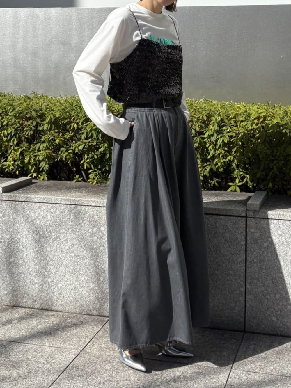 【サイズ感】 トップス:標準 ボトムス:標準 【着用レビュー】 スパンコールキャミがポイントの大人カジュアルコーデ♪ 一年中使えるコスパアイテムです。 パンツは薄手のダンガリー素材。 ウエストは後ろゴムで楽ちん、夏も涼しく穿けます!