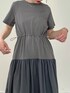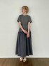 異素材の切り替えワンピース。 上半身はカットソー素材で伸び感もありとっても着やすいです。 袖がラグランデザインなので肩周りゆるっとして着心地◎。 スカート部分はハリのある素材感なのでふんわりシルエットがキレイにでます。 腰のドロストの絞りをゆるめるとカジュアルに、絞るとキレイめな印象で雰囲気を変えて着ていただけます! ご旅行や、夏の暑い日に一枚でサッと着るのにオススメです。
