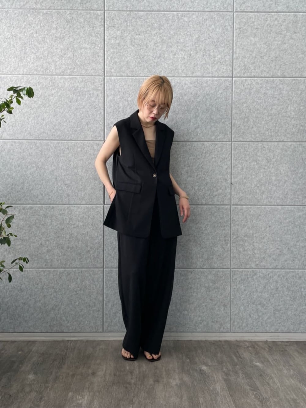 ⚪︎jacket/ゆるっとしたシルエットがメンズライクな雰囲気に Tシャツやタンクトップに羽織るだけでモードなスタイリングに! ⚪︎pants/ベストとセットアップになるパンツ ウエストはゴムと紐でラクチン、かつ調整可能でずり落ちることなくウエストにフィットして履けます リネン風のさらっとしたドライタッチなしっかりめな生地 ポリエステルなのでシワにならずイージーケア