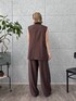 リネン見えするドライタッチな素材のセットアップです。 かっちりしすぎず、お洒落な通勤着をお探しの方にぴったり! 流行のブラウンも合わせやすいカラーで着回し力高め。 パンツはウエストが紐で絞れるのが◎ポイントです♪