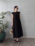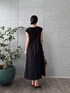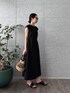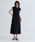 ・Dress シンプルで上品なブラックドレス。 ウエスト部分にドローストリングがあり、自分好みにシルエットを調整できるのが嬉しいポイント。ふんわりとしたスカート部分が動きやすく、着ているとリラックス感があります。素材は軽やかで、夏でも涼しげに着こなせます。 全体として、シックでありながらもカジュアルダウンできる一枚なので、デートやカフェ巡りにもぴったりのコーディネートです!