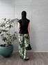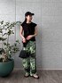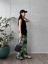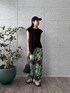 ・Tops サイドのリボンでシルエットを調整できるのが特徴です。コンパクトなデザインながら、しっかりした素材感で、安心して着られます。カジュアルなデニムや柄物とも相性が良く、毎日のコーデに活躍するアイテムです。 ・Pants オリジナル柄のパンツは、鮮やかなグリーンが印象的で、コーディネートの主役に。ゆったりとしたシルエットが気楽に着られ、夏の暑い日にもぴったりです。軽やかな素材なので、動きやすく、ビーチやカフェなどのリラックスしたシーンに最適です。