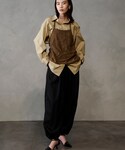 【インナー】 若干ストレッチが効いた素材で着脱が楽でした! 大きめなレース柄が華やかな印象にしてくれます。 袖が長めなのもトレンド感があり◎。 【ベスト】 しっかりめの素材感でオケージョンからカジュアルまで幅広いスタイリングに活躍してくれます! ウエスト高めの位置でタックが入っていてスタイルアップ効果があるのも嬉しいポイントです。 【パンツ】 マットな質感が珍しく、秋のムードにぴったりなアイテム。生地自体は薄手なので晩夏から活躍します。 裾のコードで絞り具合をお好みで調整できます。