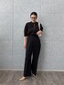 【トップス】 程よいハリ感のある素材できれいめ〜カジュアルまで幅広く活躍してくれます。 シンプルなデザインで首元のカッティングがポイントに。 少し長めの袖丈なので春から秋まで着回せます! 【パンツ】 とっても美シルエットのワイドパンツ。 前から見るとシンプルですが、後ろがクロスのデザインになっていてヒップ周りのカバーも。 モードに決まる1枚です!