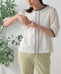 さらっとしたサッカー素材のテーラージャケットはUVカット・接触冷感・防シワ仕立て・ウォッシャブルと超高機能アイテム。 暑いけれどジャケットが必要なシーンで重宝します。 中のコーデは袖シアーとビタミンカラーのパンツで爽やかに。
