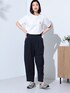 出版80周年を迎えるキャラクター「ムーミン」に登場する「ムーミンファミリー」を刺繍したTシャツ。 さりげないポイント刺繍で大人も着やすいデザインです。 今年大人気のカーブシルエットのパンツと合わせて、トレンドカジュアルな着こなしに。 タックがさりげない体型カバー効果を発揮してくれるアイテムです。