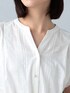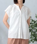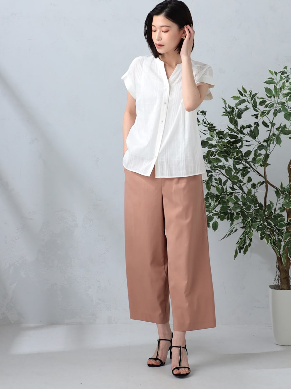肌にさらっと心地よく着られる清涼感のあるシアー素材のブラウス。 透け感を生かしたチェック柄が、無地にはないおしゃれ心を演出します。 前後差を付けたゆったりめのシルエット、デコルテ見せのスキッパーデザインが顔まわりをすっきりと見せてくれるポイント。 Tシャツ感覚で使えて着まわし度は抜群、ボタンを開けて羽織りとしてあわせるのもおすすめです。
