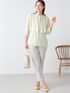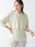微光沢感のある素材が上品なブラウス。 ギャザーの柔らかなドレープ感でフェミニンな印象でお召しいただけます。 前身ごろを二重にしたケープ風デザインがポイント。 ボトムスに細身のパンツを合わせる時はインをせず着流しで着るとバランス◎ 洗濯機で洗えるウォッシャブル仕様、気になる紫外線を防ぐUV素材で夏でも着られる7分袖仕様です。