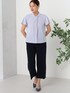 大人気「キレメクシリーズ」の万能ブラウス。 きれいめなピンストライプ柄をベースにボウタイをプラスしたデザイン。 きちんと感のある印象ですが、素材は肌にさらっと心地よく着られる清涼感と、全方向に伸びるマルチストレッチ仕立てで着心地快適。 フレアに広がる袖口もボリューム感は出ないのでカーディガンやジャケットのインにも◎