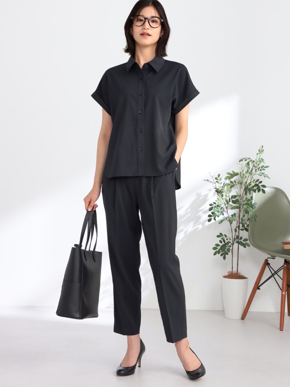 風通しがよくムレにくい高通気性・吸汗速乾機能つき素材のセットアップ。 自宅で洗濯でき、シワがつきにくいためお手入れも楽ちん。 きちんと感を演出できる衿つきシャツブラウスなので、お仕事やお子さんのご行事ごとの際も活躍。 袖口の折り返しや背中のタックで、細部まで上品な印象に。 パンツは腰まわりをすっきりカバーするツータックデザイン。 裾に向かって細くなるテーパードシルエットも、スマートな印象を演出してくれます。