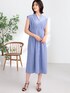 肌離れの良い接触冷感サッカー素材を使用したワンピース。 洗濯機で洗濯でき、シワもつきにくいのがうれしいポイント。 リラックス感ある着心地ながら、ウエストのタックがスタイルアップを実現。 スキッパーデザインにより、顔まわりもすっきり見えます。 オンオフどちらにもマッチする一枚。 爽やかなブルーパープルは大人も取り入れやすい上品見えカラーです。