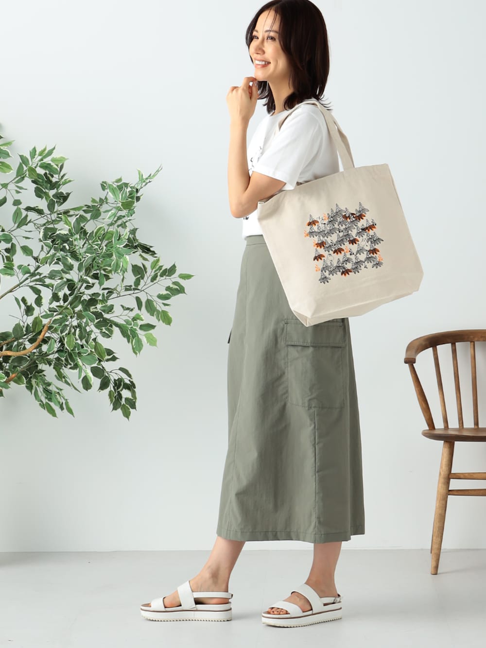 今年出版80周年を迎える「ムーミン」に登場するムーミンファミリーとのコラボアイテムを使ったコーディネート。 トップスは程良い落ち感のある天竺素材を使用したTシャツ。 ハリが控えめなため、すっきりと着こなせる素材感です。 トートバッグは軽くて丈夫なキャンバス素材、ナチュラルなカラバリであわせるコーデを選ばずお使いいただけます。 ムーミンの世界観をご自身のコーディネートに取り入れてお楽しみいただけます。