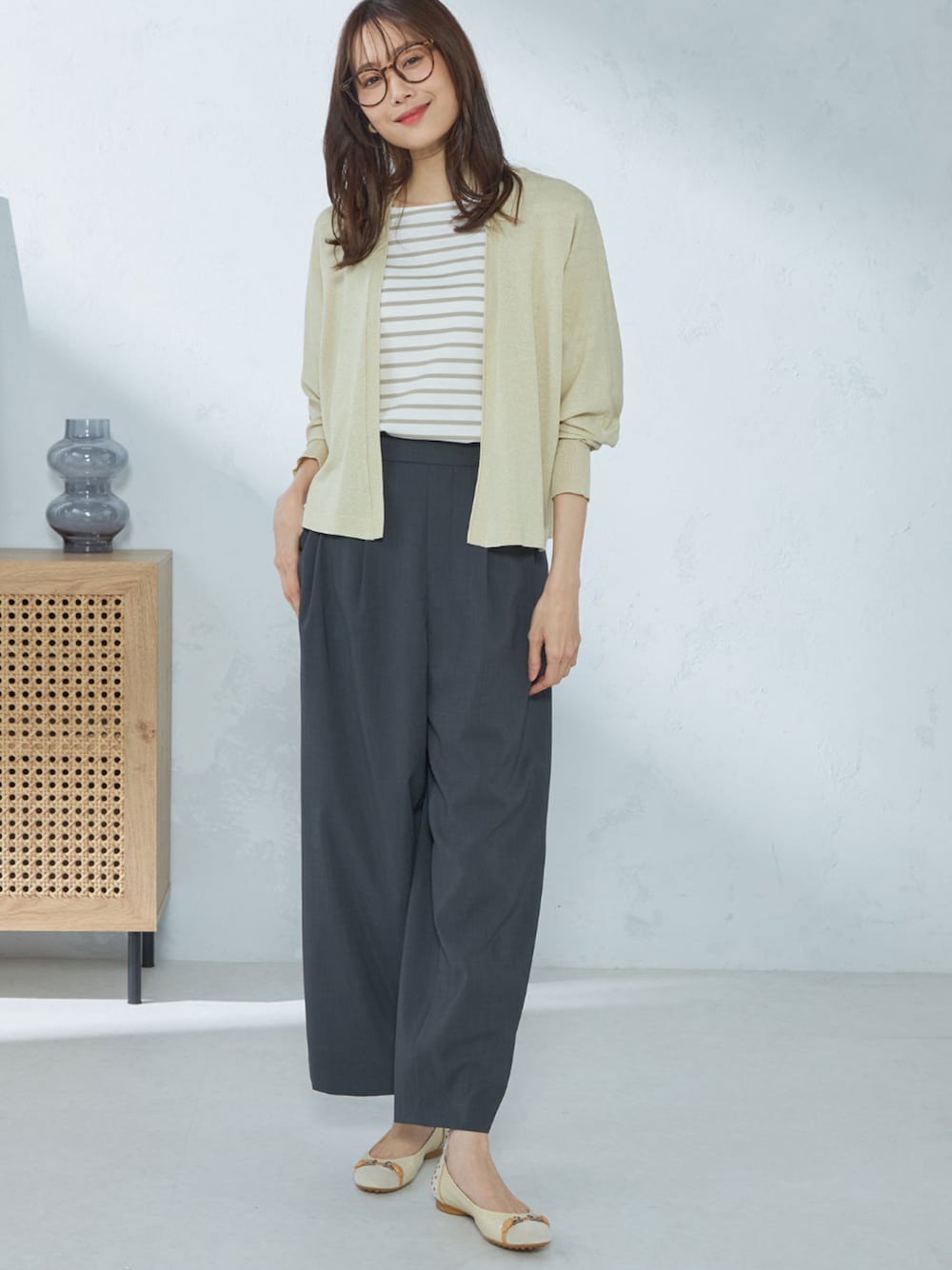 ゆるっとしたシルエットラインにこだわったトッパーカーディガン。 微ラメ使いをポイントにした光沢のある素材感が目を惹きます。 ドルマンスリーブで腕肩周りをゆったりとさせており、着心地はストレスフリー。 薄手の素材感なので朝晩の気温調整や、冷房対策にも◎ 長すぎない丈感で、ワイドパンツやスカートの上の羽織にもマッチします。