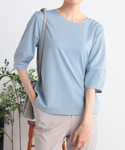 ボリュームのあるランタン袖が可愛らしい7分袖プルオーバー。 ほどよいゆとりでボディラインをカバーしつつ、バックネックのスリットですっきり感をプラス。 1枚で主役になり、合わせやすさも備えています。 適度な肉感のあるカットソー生地を使用。 透けが出にくく、1枚で着ても安心です。 くすみがかったライトブルーのカラーは爽やかさもありつつ、これからの季節にもぴったり。 ボトムはトップスにボリュームがある分、すっきりしたスリムパンツを合わせて。