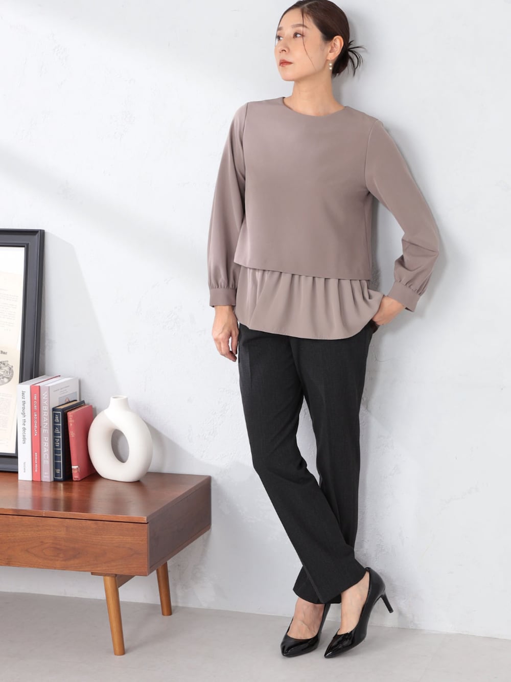 トレンドのレイヤードスタイルを一枚で。 裾から異素材をのぞかせたレイヤード風ブラウス。 テクニック要らずでおしゃれ見えして、腰まわりもさりげなくカバーしてくれます。 ご自宅の洗濯機で洗濯できるウォッシャブル機能つき。 洗濯ジワになりにくい仕様です。 パンツを合わせてすっきりコーデすると、上品な甘さが際立ちます。 オンオフ問わず、幅広く活躍する一枚です。