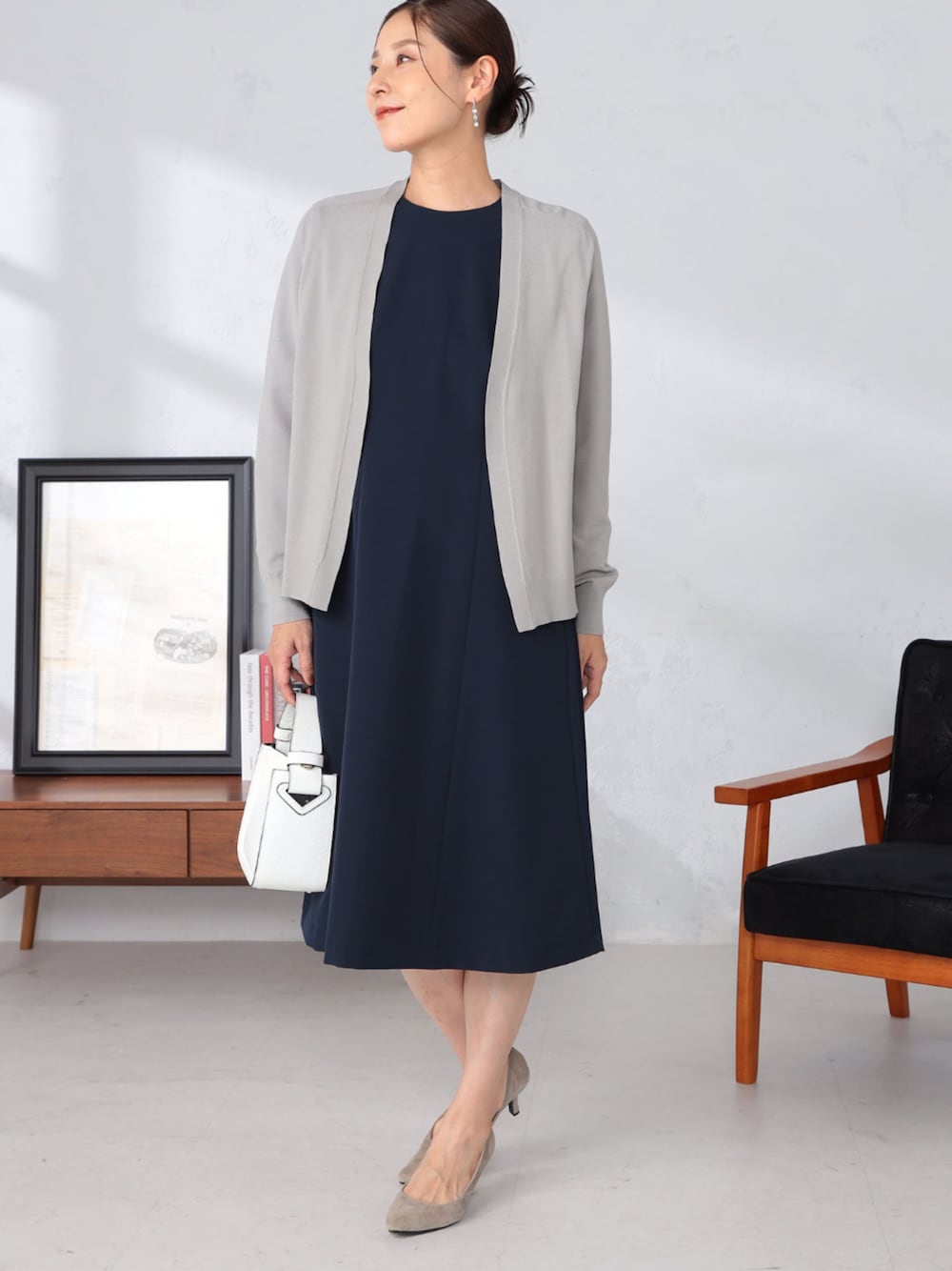 朝晩と日中の寒暖差が激しい今、どんなコーデにも合う羽織物があったら便利ですよね。 GALLORIAの新作カーディガンはそんな希望を叶えてくれる優秀なアイテム。 乾燥しがちなシーズンにうれしい、静電気防止と保湿性に優れたシアバター加工。 洗濯機で洗うことができるので、お手入れイージー性にも優れています。 ジャストな丈感が使いやすく、ワンピースと合わせた時もスタイルアップして見えるのが嬉しいポイント。 インに合わせたワンピースはサイドにあしらったプリーツの切替えが、動きに合わせて華やかな表情を見せてくれます。 パーティーなどのオケージョンやセレモニーシーンでの着用もおすすめです。
