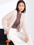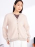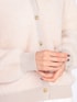 着回しにも重宝する、ニットカーディガンのアンサンブル。 フェザー調の上品な光沢感と毛足のあるカーディガンは肌触りの柔らかな風合いが特徴的。 滑らかな生地を使用したロンTは快適な着心地です。 リブ使いがアクセントになったデザインで、ゴールドボタンがポイントに。 柔らかいベージュのカラーが素材のふわふわ感をより引き立てます。 ボトムスにはホワイトのパンツを合わせて冬らしい大人の淡色コーデに仕上げました。