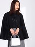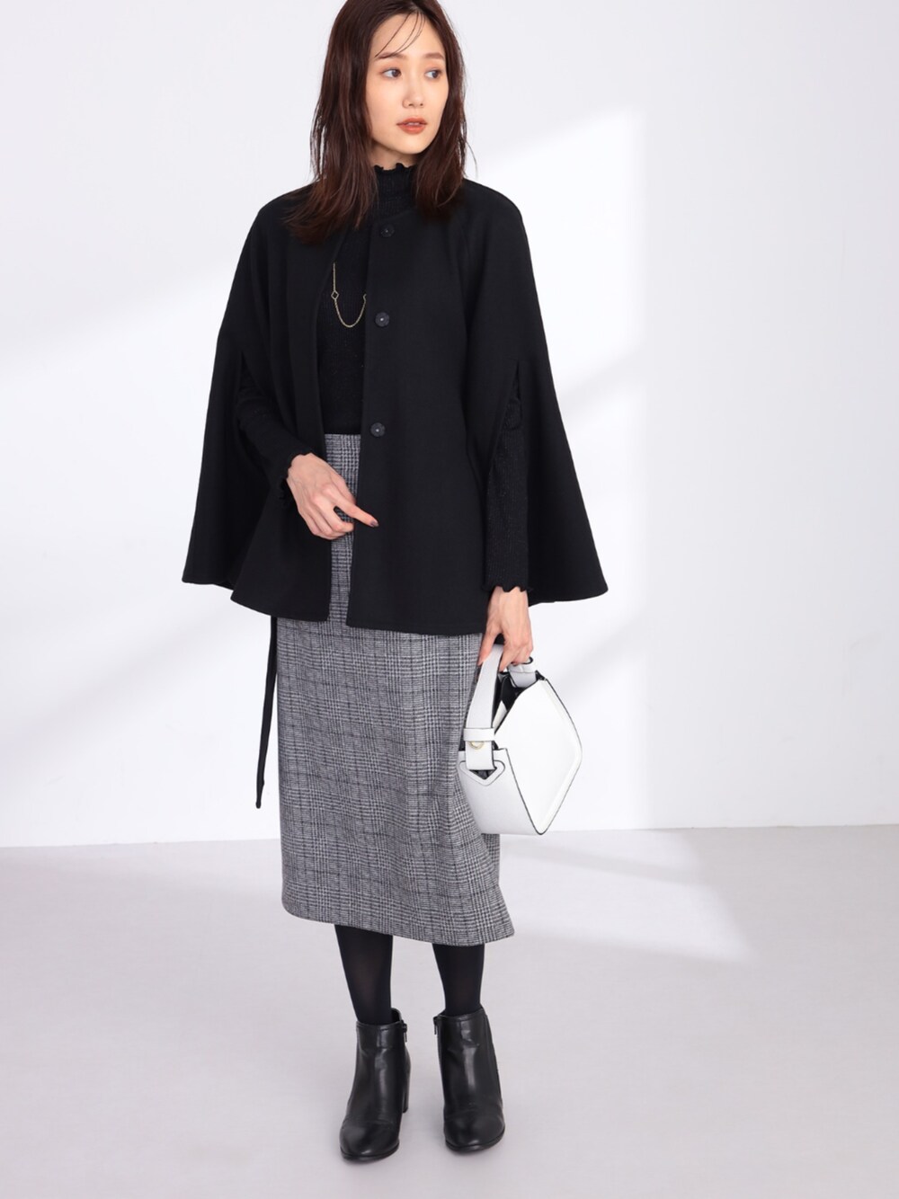 定番の羽織に飽きてきた方におすすめなのがエレガントに決まる、ポンチョ風コート。 装いにシーズン感を演出してくれる、あたたかな素材。 重ね着してもやぼったさを感じにくい、ほど良い肉感。 ボディラインを拾わない、裾に向かって広がるフレアシルエットと顔まわりがすっきりと見えるノーカラーデザインを採用しました。 ガウンのように羽織ればこなれ感たっぷりに。 インをIラインを意識したコーディネートにすることでスッキリとした着こなしも叶います。 綺麗めなナロースカートを合わせれば、ちょっとしたお食事やお呼ばれにも最適です。