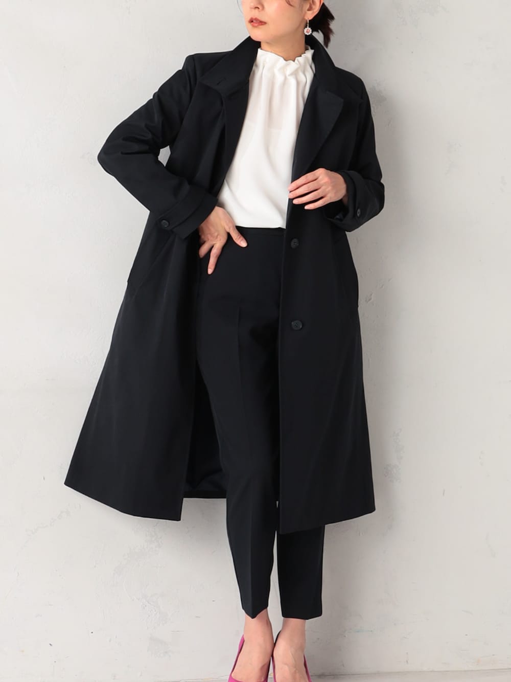 GALLORIA(ギャローリア)公式WEARをご覧いただきありがとうございます。 本日は、春の「ビジネス・シック」な装いをお届けします。 ネイビーのワントーンをベースに、機能性抜群のスタンド襟コートをさらりと羽織った、忙しく働く女性に寄り添うスタイリングです。 ■ Point 春の強い味方「防花粉」コート: 取り外し可能なライナー付きで、気温の変化に合わせて調整が可能。さらに防花粉加工が施されており、これからの季節をより快適に、スマートにサポートしてくれます。 凛とした表情を作るスタンド襟: 首元のラインを美しく見せるスタンド襟のデザインが、知的な印象を演出。ボタンを閉めても開けても決まる、計算されたシルエットが魅力です。 顔周りを華やかに彩るギャザーネック: インナーには、首元のギャザーとパール調パーツが目を惹くホワイトブラウスをセレクト。ネイビーのコートの中にホワイトを差し込むことで、清潔感と春らしい軽やかさをプラスします。 美脚を約束するテーパードパンツ: センタープレスの効いたパンツが、プロフェッショナルな佇まいを叶えます。程よくゆとりのあるテーパードシルエットは、長時間の移動やデスクワークにも最適です。 足元には差し色のベリーピンクを添えて、遊び心のある大人の余裕を表現しました。 「凛として、しなやかに」 どんな日も自分らしく、美しく過ごせる春の一着を、ぜひGALLORIAで見つけてください。