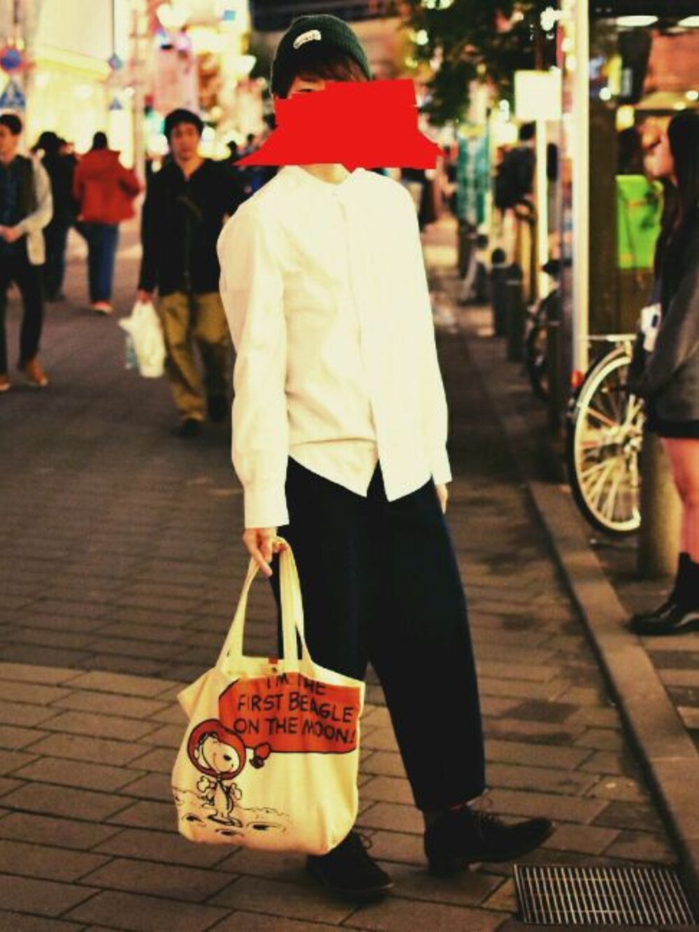 今日はすごく暖かったのでシンプルに白いバンドカラーシャツとワイドパンツでいきました! シャツのサイズは敢えてLにしてみましたが少しはダボッと感でたかな?