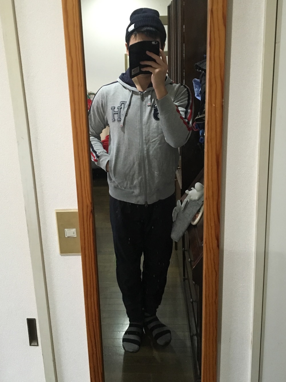 お腹すいたのでたこ焼き買いに行こうかと思います。 家から近いのでジャージとパーカーです。