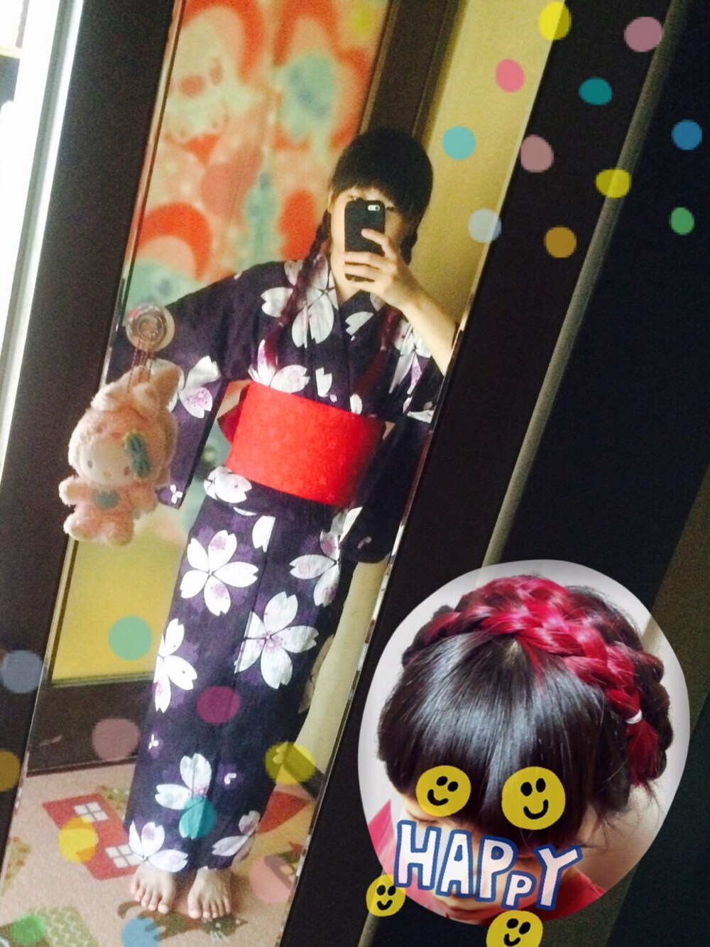 ゆかた🍧はなび🌻 そしてそして 気になる髪の毛💇 毛先をピンクに染めました💟