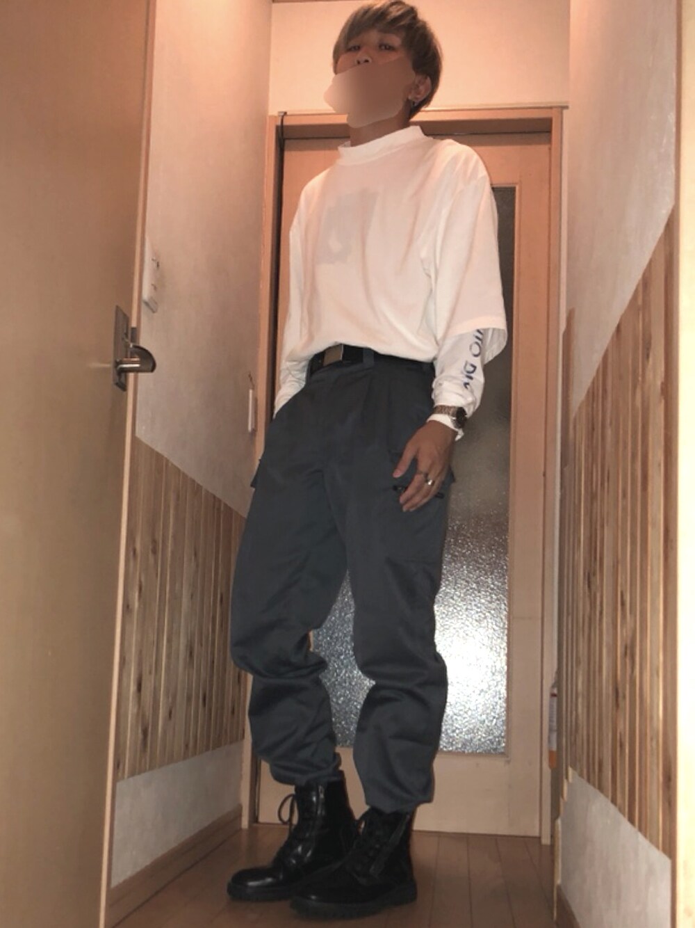 にぇのTシャツ/カットソー「5分袖モックネック ビッグシルエットTシャツ」を使ったコーディネート