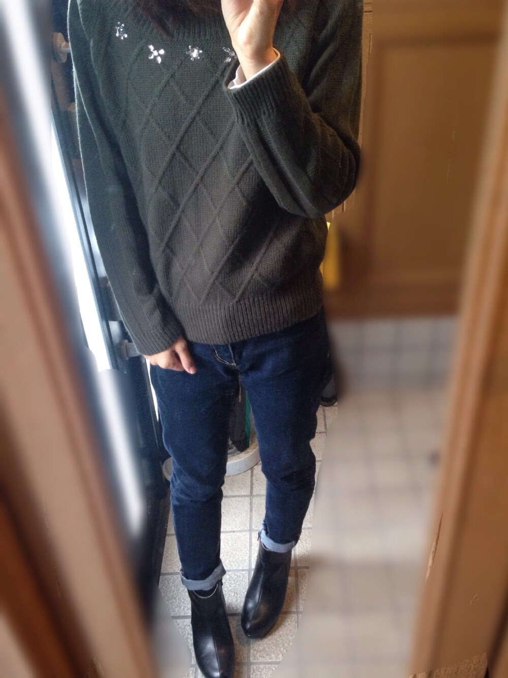 ニットにスキニーの普通のコーデですw 今日は寒かった〜 ニットのみじゃ無理なので トレンチコート着ていった♪ 仕事の悩み聞いてもらってよかった。 もう気にしないことにした!