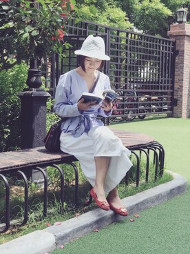 「UNIQLO(ユニクロ)のアイテム(Tシャツ/カットソー、ブルー系)」を使った、干巴鱼0028さん(レディース・161cm)の春コーディネート