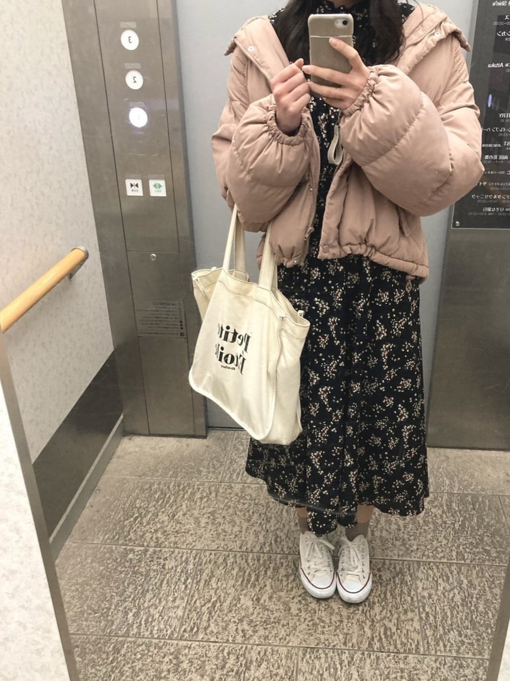 . . . 最近は22時とかまで学校おるので 中綿ブルゾンは強い味方ですね 去年買ったナイスクラップの中綿ブルゾンは袖も裾も大っ好きなシルエット🌷軽いしあったかいし税抜き¥4,900というプチプラ☁️ピンクベージュはあんまり人と被らんからお気に入りです🌼