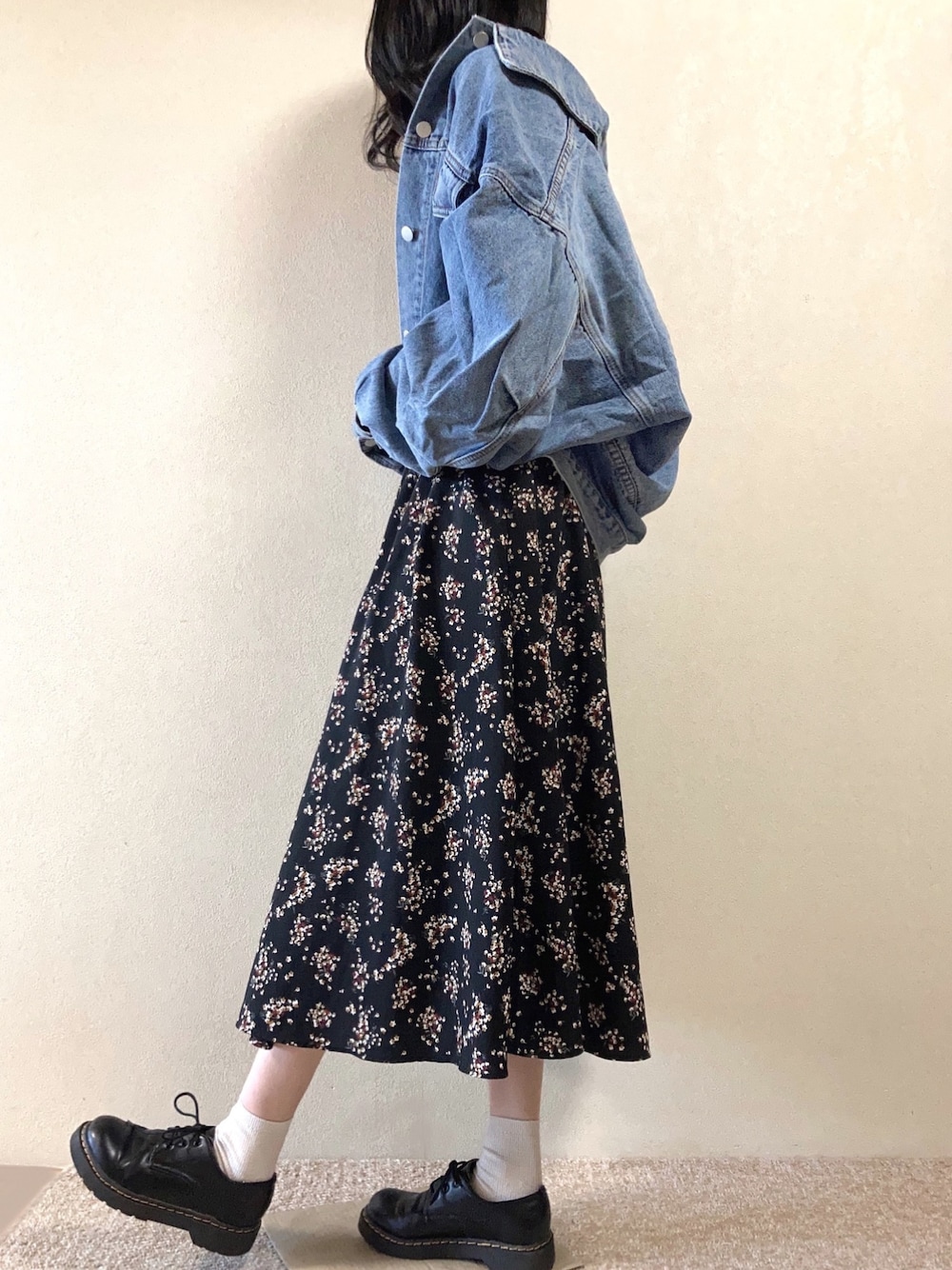 . . . 春コーデ🌸🐝 ずっと気になってたMelのお洋服買いました👏 ボリュームスリーブジャケット見ての通り うしろがめっっっっっちゃ可愛い🧡💛 ((とゆうことで横向きです📸 袖もボリュームあってほんまにお気に入り‼ 花柄×デニムってわたしの中では the 春!!って感じや🌷 早くあったかくなってくれ〜☀️