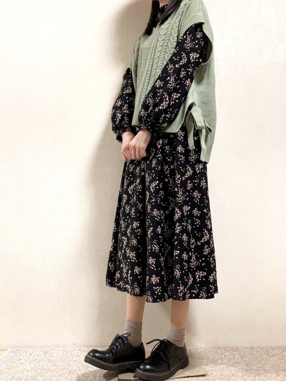 . . . ハニーズのプチプラコーデ🌸 髪ストレートで撮ったからか なんかめっちゃ真面目な子に見える👀笑 花柄ワンピはほんとに着まわし利く… このニットベストもハニーズです🕊🌷 横のスリットとリボンがお気に入りです✨🎀 結構肩のとこ長めやからゆるっと着れる!! 雨の日ってなんかミニスカートとか嫌でロングスカート履くんやけど、裾が濡れるんですよね…当たり前やけど😅 次こそミニ丈にする(笑)💭💭