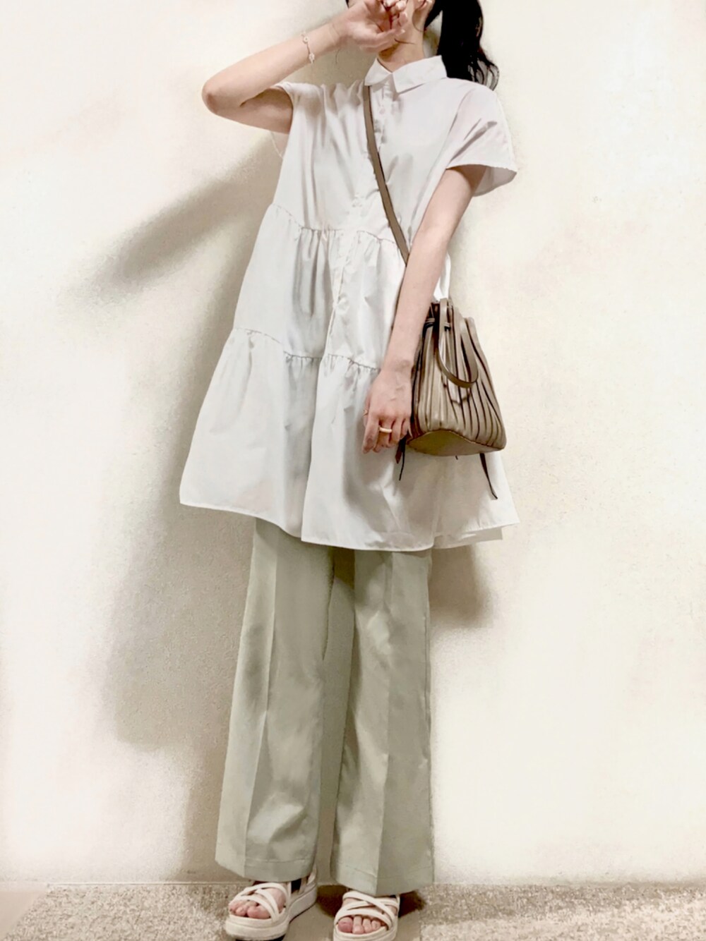 . . . おはようございます⏰🐔☀️ GUのティアードシャツワンピースをトップスとして着ました¨̮♡︎