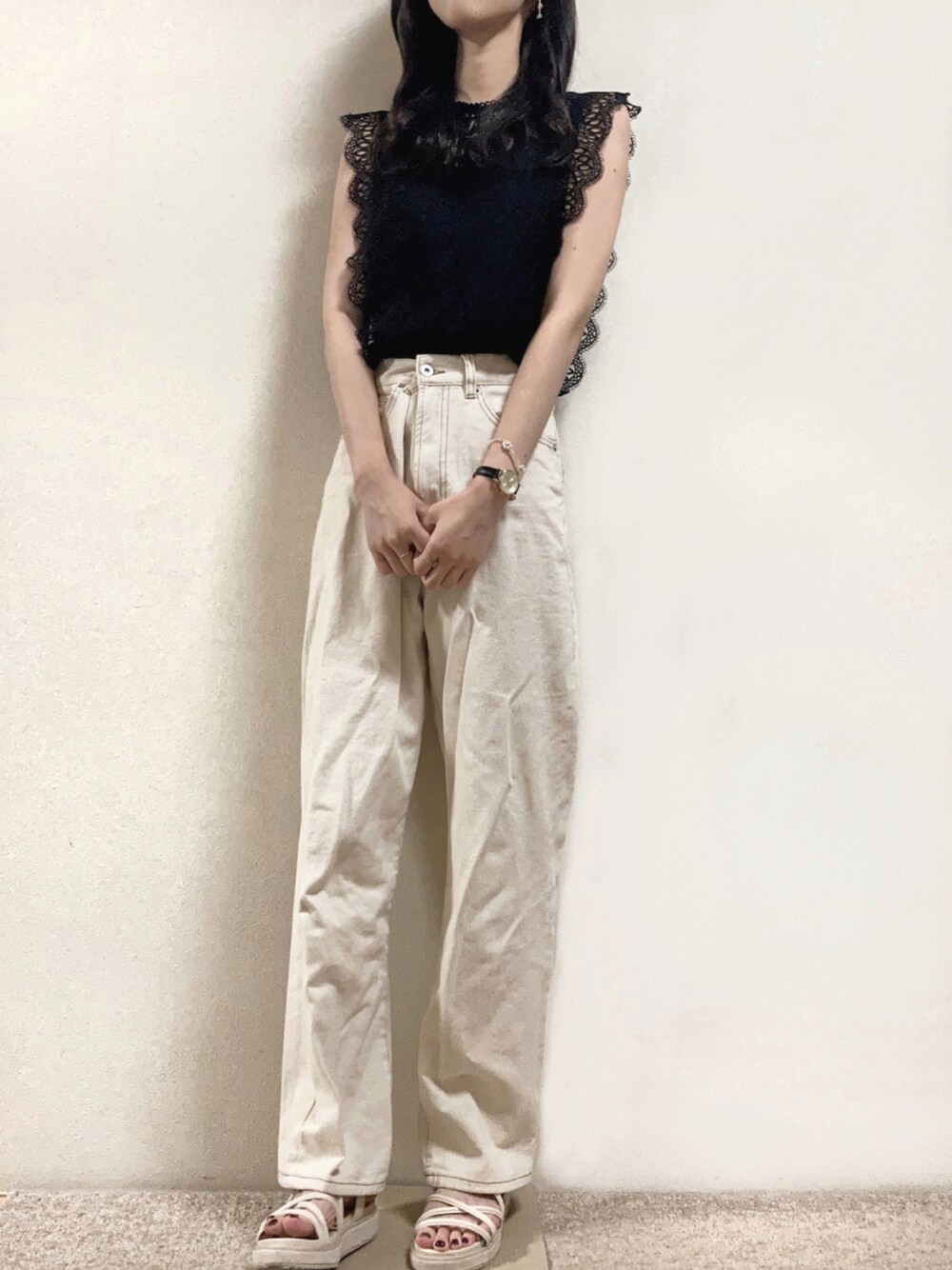 . . . おはようございます⏰🐔☀️ モノクロ大人っぽカジュアルコーデ⺣̤̬🌷 きれいめのレーストップスを デニムパンツでカジュアルダウンしました👀✨ 黒のコンバースとか履いても可愛いやろうな💭💭 このパンツ、ウエストがどうしても大きくて ベルトあまりしない勢なのでいつも困ってて… インスタで見つけたのやってみたらめっちゃ良かった🤭 ベルト通すとこに通してからいつも通りボタン止めるだけなのでぜひ🙌🏻