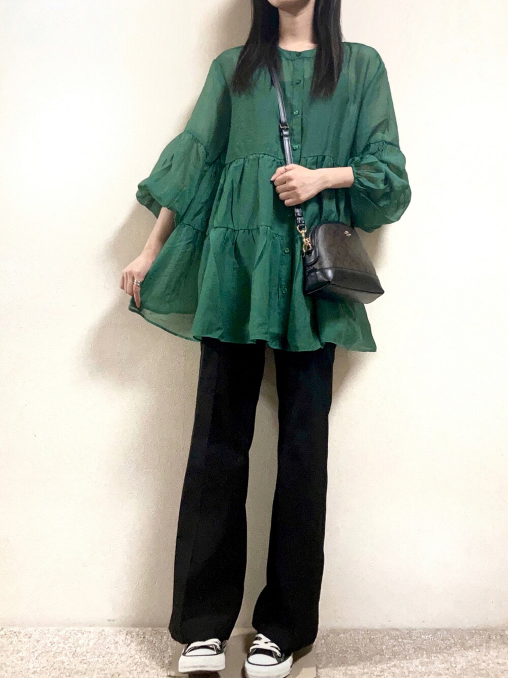 . . おはようございます⏰🐔☀️ 夏服セールでシアー素材のティアードトップスを ゲットしました🐍🍃🍀🌱🍏📗💚 実は夏手前に新作として出てた時から気になってて セールまで残ってて助かった👀✨ 袖もめっちゃ可愛い❣️❣️ ちなみに前後2wayです👏🏻👏🏻