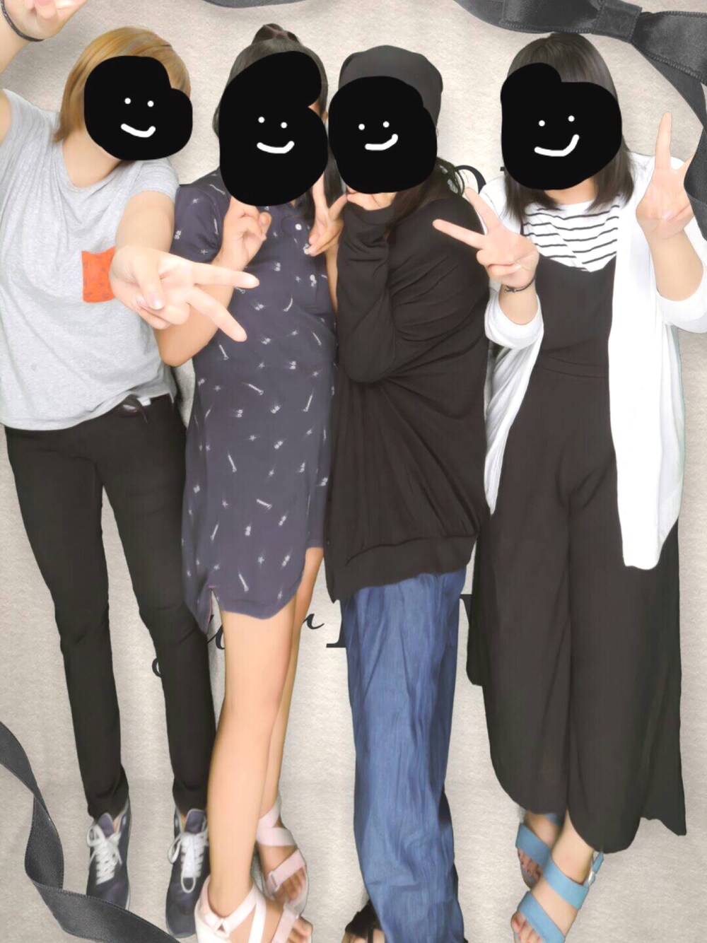 家族でプリクラです。 左から私 妹 母 姉 。 相変わらず私はシンプルでメンズっぽい服装が好きです。