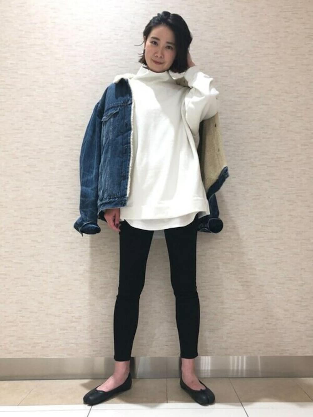 新作のユニバーサルレギンスデニムは履き心地抜群! ストレスフリーに美脚が実現します。 毎年大人気のデニムボアジャケットを合わせて。 ボリュームのあるアウターは細身のデニムでスタイルUP。 【Gapストア グランツリー武蔵小杉店 / Igarashi】