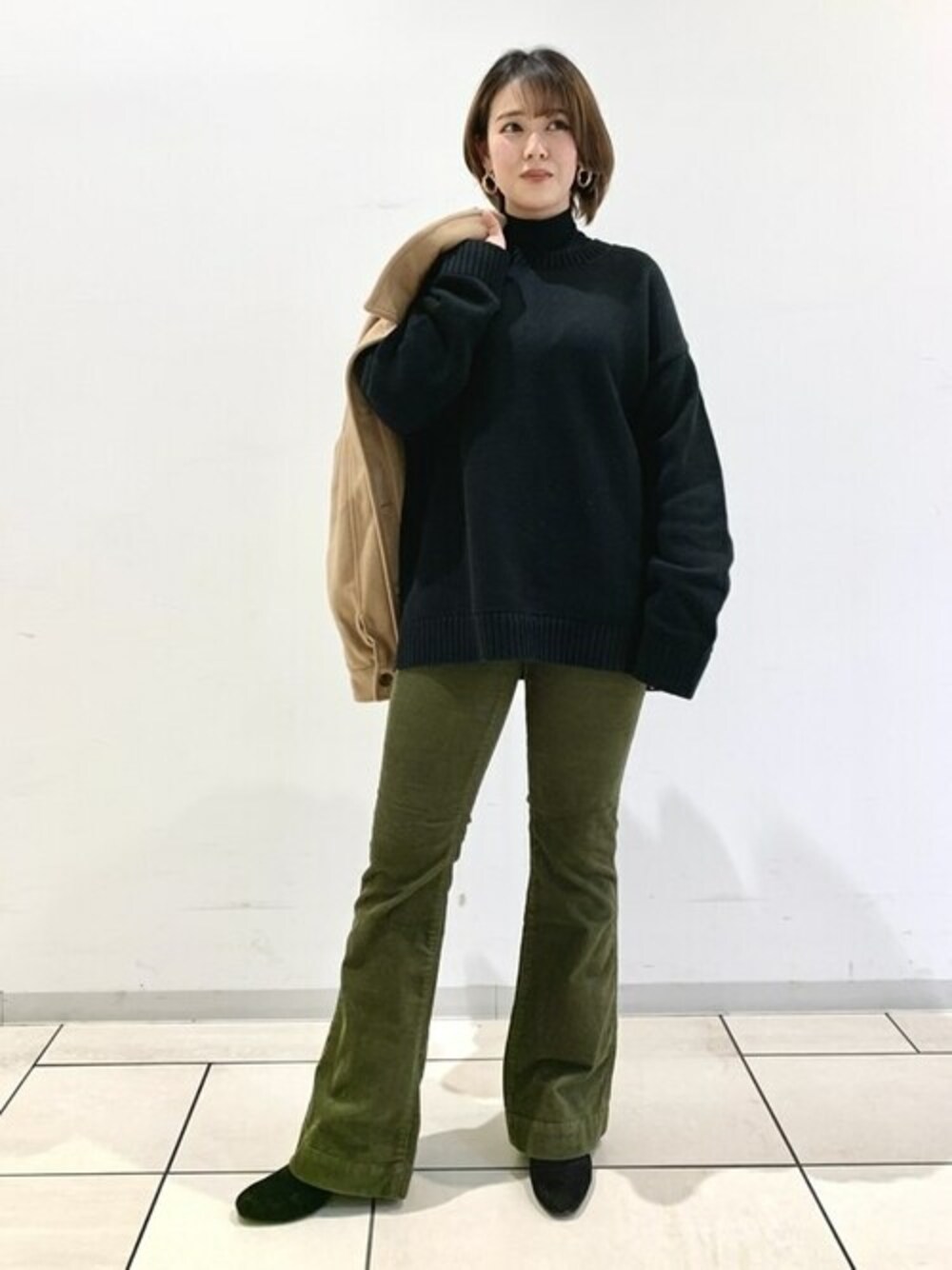 メンズセーターで冬コーデ トレンドのコーデュロイフレアパンツはすっきり細身のシルエットなので、メンズのセーターをざっくり合わせてます。 メンズでもわざとサイズを上げてるところがポイントです! 【Gapストア テラスモール湘南店 / Murashima】