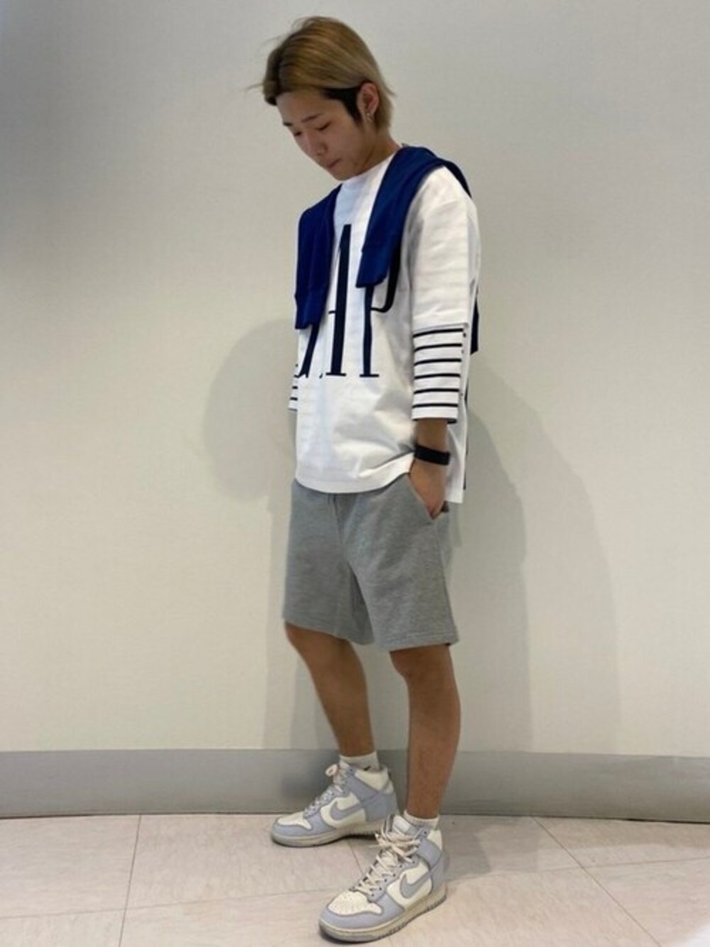 メンズのスプリングスタイル! ロゴTシャツメインにボーダーTシャツとスウェットショーツでさわやかリラックスコーデです。 【Gapストア 泉北パンジョ店 / Ishikawa】