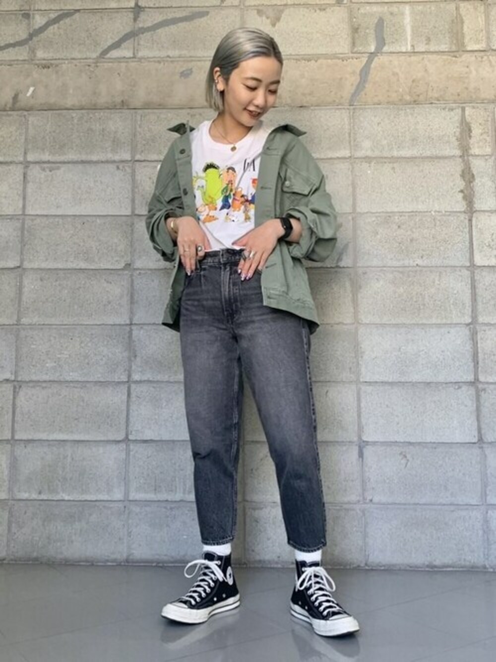 グラフィックTを入れて辛口コーデに遊び心をトッピングしました♪ メンズのアウターでたっぷりと羽織ってあげてこなれ感が一層惹き立ちます。 バレルデニムも足首がゆったりとしているのでとても履きやすいですよ♪ 【Gapストア キャナルシティ博多店 / Tanaka】